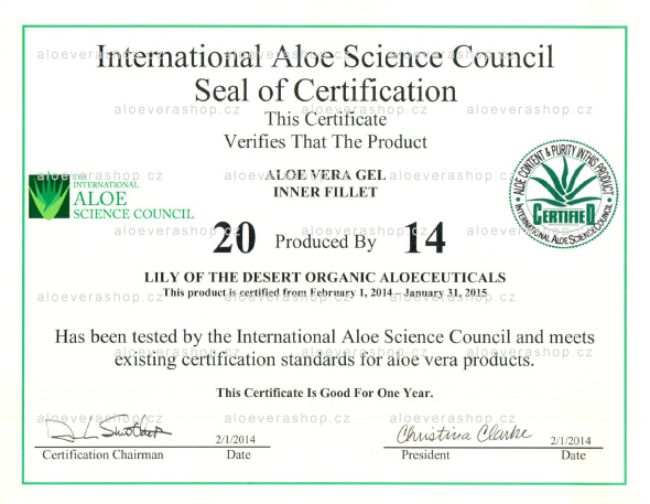 vědeckou radou pro aloe (International Aloe Science Council). Pečeť IASC je považována
